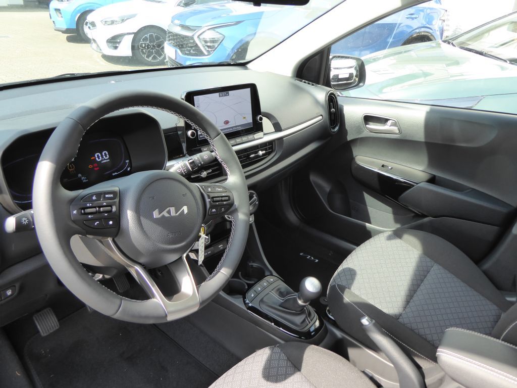 Lackierung: Metallic-Sonderlackierung, 12 V Steckdose, ABS mit EBD, Airbag: 2 Frontairbags, Airbag: 2 Vorhangairbags, Aktives Bremslicht ESS, Außenspiegel beheizbar, Außenspiegel elektrisch einstellbar, Außenspiegel in Wagenfarbe, Berganfahrhilfe (HAC), Bluetooth-Freisprecheinrichtung, Bremsassistent (BAS), Bremsleuchte: Dritte, Drehzahlmesser, Dreipunktgurte an allen Sitzplätzen (4), ESC (Elek.Stabilitätspro.) m.Traktionsk., EcoDynamics Start-Stopp-System (ISG), Energie-Regenerationssystem, Fensterheber elektrisch hinten, Fensterheber elektrisch vorne, Fernentriegelung der Tankklappe, Frontkollisionswarner m. Fußgängererken., Fußmattenset, Gegenlenkunterstützung, Gepäckraumabdeckung, Gepäckraumbeleuchtung, Geschwindigkeitsassistent intelligent, Geschwindigkeitsbegrenzer, Geschwindigkeitsregelanlage, Getriebe: 5-Gang-Schaltgetriebe, Getränkehalter vorn in der Zentralkonsol, Heckscheibenheizung, Heckscheibenwischer, ISOFIX-Halterung an äußeren Rücksitzen, ISOFIX-Halterung hinten, Innenraumbeleuchtung, Insassenalarm (Rear Seat Alert, RSA), Klimaanlage, Kopfstützen an allen Sitzplätzen höh.(4), Lenkrad beheizbar, Lenkrad höhenverstellbar, Lenkrad: Multifunktionslenkrad, Müdigkeitswarner, Navigation: Kia Kartennavigation, Nebelschlussleuchte LED, Online-Dienste Kia Connect mit Kia Live, Parksensoren hinten (PDW), Polster: Stoff, Radiozub.: 2 Frontlautsprecher, Radiozub.: 2 Hecklautsprecher, Radiozub.: 2 Hochtöner, Radiozubehör: USB-Anschluss, Reifendruckkontrollsystem, Reifenreparaturset, Räder: 14 Zoll Leichtmetallfelgen, Rückfahrkamera, Rücksitzlehne asymetrisch geteilt umkla., Servolenkung, Sicherheitsgurte vorn höhenverstellbar, Sitze: Fahrersitz höhenverstellbar, Sitzheizung Fahrer und Beifahrer, Spurfolgeassistent, Spurhalteassistent, aktiv, Stoßfänger in Wagenfarbe, Supervision-Instrumentenanzeige 10,7 cm, Tagfahrlicht, Türgriffe in Wagenfarbe, Wegfahrsperre, Wärmeschutzverglasung, Zentralverriegelung mit Funkfernbed.,
